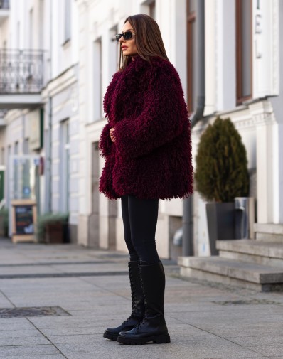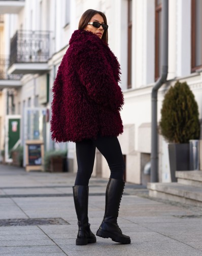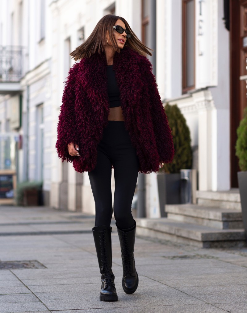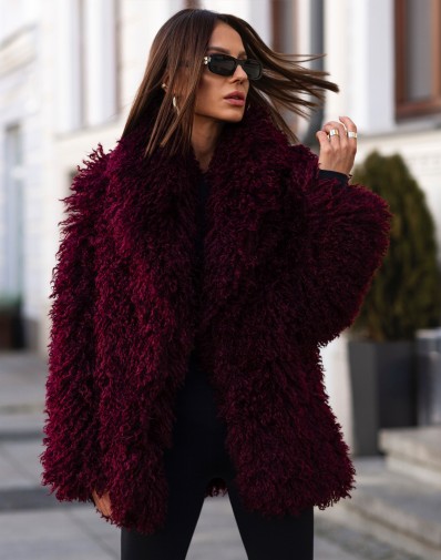 Stylowe futerko o niezwykle miękkiej i przyjemnej w dotyku fakturze, które doskonale otuli w chłodniejsze dni. Zapinane na dwa subtelne napy, pięknie układa się na sylwetce i nadaje całości eleganckiego charakteru. Model bez kieszeni, z długimi rękawami i długością sięgającą do połowy uda, to idealne połączenie wygody i szyku. Świetnie sprawdzi się zarówno w codziennych, jak i bardziej wyjściowych stylizacjach.