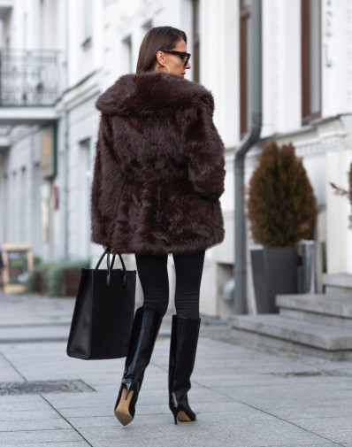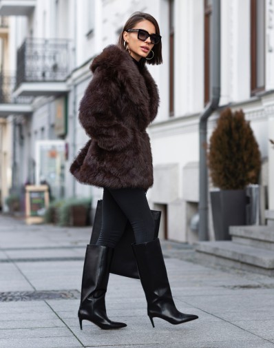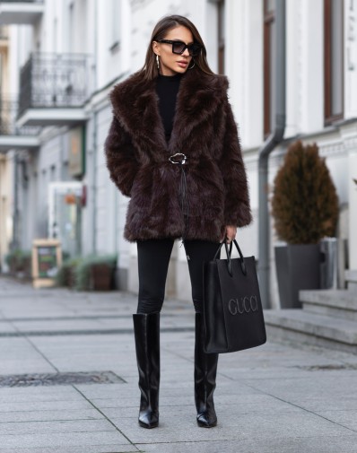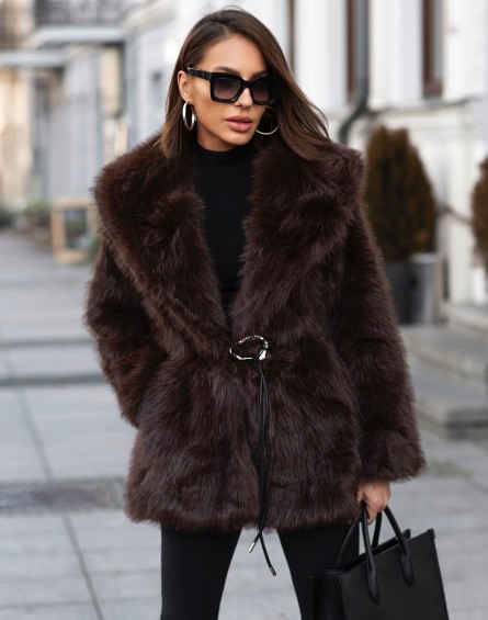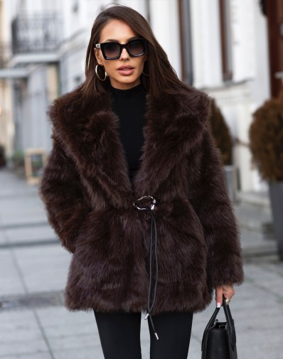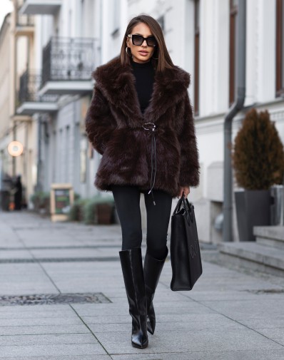 Stylowe futerko o niezwykle miękkiej i przyjemnej w dotyku fakturze, które doskonale otuli w chłodniejsze dni. Zapinane na dwa subtelne napy, pięknie układa się na sylwetce i nadaje całości eleganckiego charakteru. Model z kieszeniami, z długimi rękawami i długością za pupę, to idealne połączenie wygody i szyku. Świetnie sprawdzi się zarówno w codziennych, jak i bardziej wyjściowych stylizacjach.Dodatkowo futerko posiada pasek do wiązania w talii dla lepszego efektu.