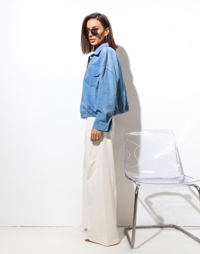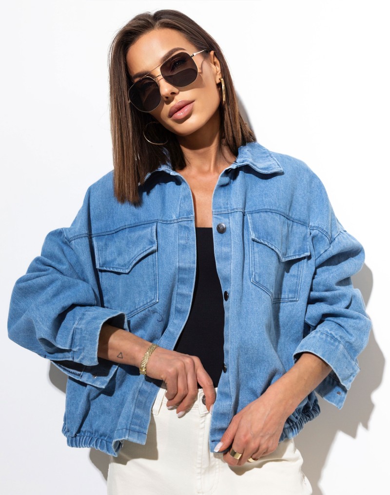 Stylowa bomberka wykonana z wysokiej jakości bawełny. Klasyczny,luźny krój zakończony elastyczną gumką z tyłu oraz praktyczne zapięcie na guziki sprawiają, że kurtka świetnie układa się na sylwetce i doskonale dopełnia każdą stylizację.Z przodu praktyczne kieszenie z klapami.Sprawdzi się zarówno w codziennych, jak i bardziej wyrazistych outfitach.
