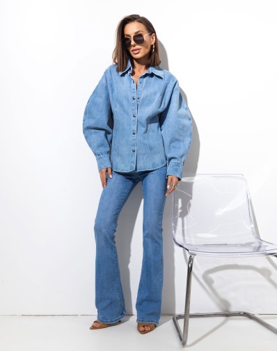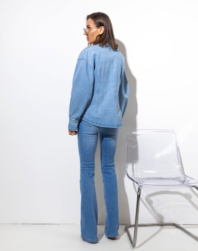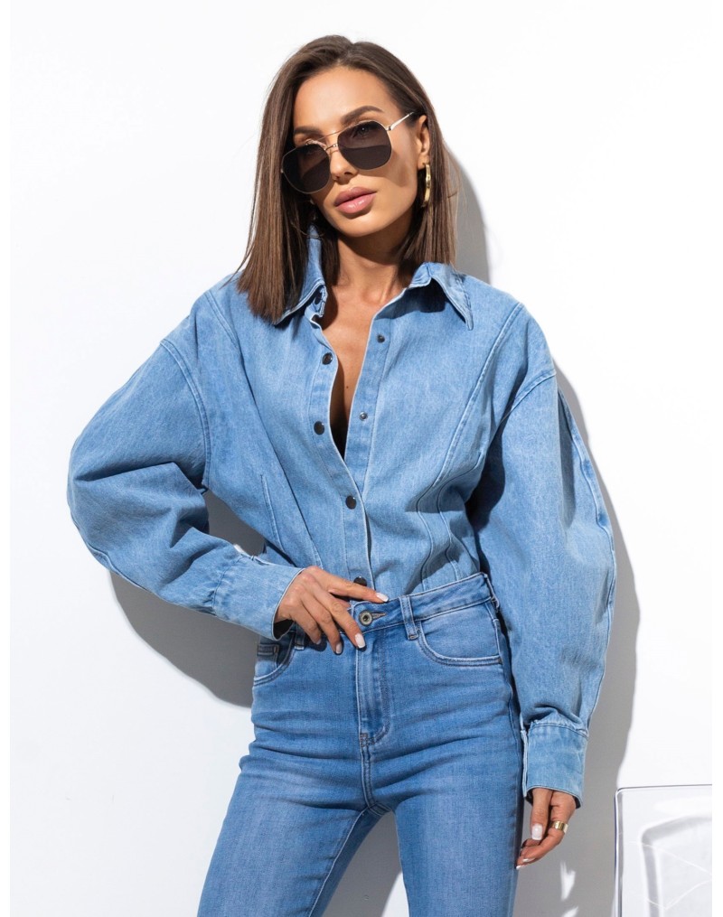 Koszula jeansowa o luźniejszym, komfortowym kroju, który zapewnia swobodę i świetnie wpisuje się w codzienne stylizacje. Model zapinany na napy, z klasycznym kołnierzykiem i ozdobnymi przeszyciami nadającymi charakteru oraz wysmuklającymi talię. Wykonana z miękkiego denimu, idealna zarówno do jeansów, jak i bardziej kobiecych zestawów. Ponadczasowy fason w nowoczesnym wydaniu.