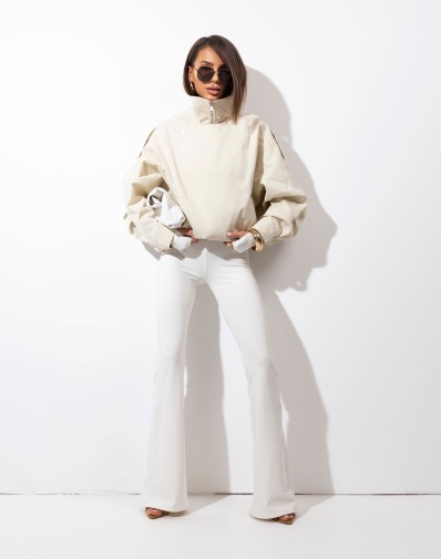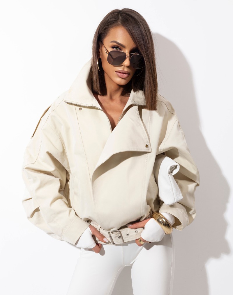 Klasyka w nowoczesnym wydaniu. Bawełniana ramoneska o oversize’owym kroju to must-have w każdej szafie. Wykonana z miękkiej tkaniny, zachwyca nie tylko designem, ale też wygodą. Charakteru dodają jej szerokie klapy, ozdobne suwaki i pasek w talii, który pozwala dopasować kurtkę do sylwetki.To uniwersalny model, który świetnie sprawdzi się zarówno w codziennych, jak i bardziej wyrazistych stylizacjach – od jeansów i basicowego topu. Stylowa, ponadczasowa i niezastąpiona w przejściowe dni.