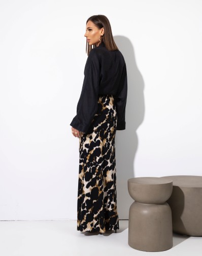 Spódnica z tkaniny wiskozowej, krojona ze skosu dzięki czemu jest elastyczna Wysoki stan, ołówkowy fason i długość maxi. Spódnica na gumce. Uniwersalny krój, pasuje do szpilek, trampek i wysokich botków.