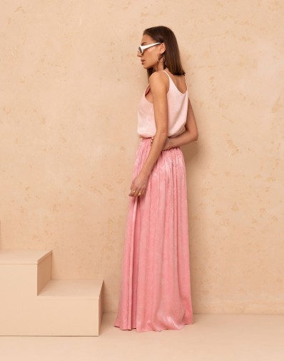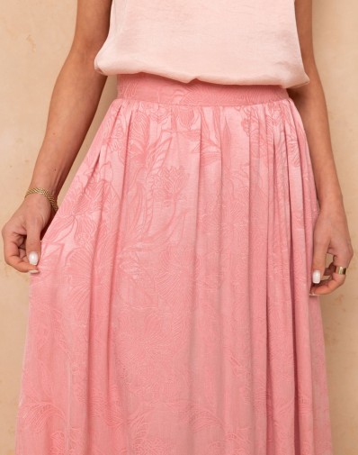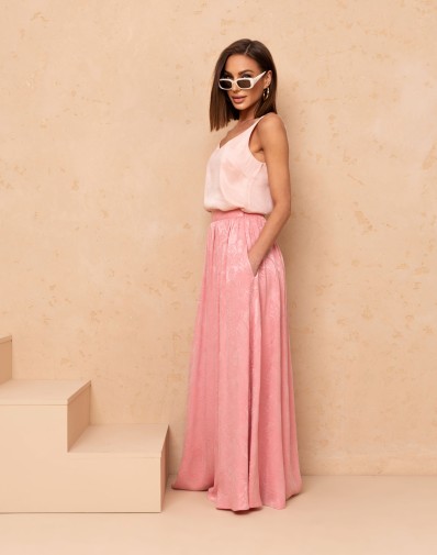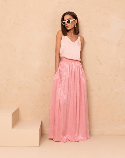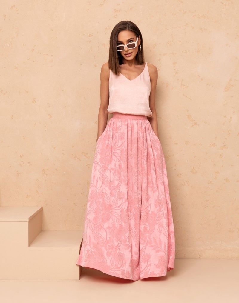 Efektowna spódnica maxi z koła, która zachwyca piękną,mięsistą tkaniną w tłoczone kwiaty i kobiecym fasonem. Szeroki krój pięknie układa się w ruchu, nadając stylizacji lekkości i elegancji. Model posiada praktyczne kieszenie po bokach oraz wygodne zapięcie na zamek. Idealna zarówno na co dzień, jak i na wyjątkowe okazje.