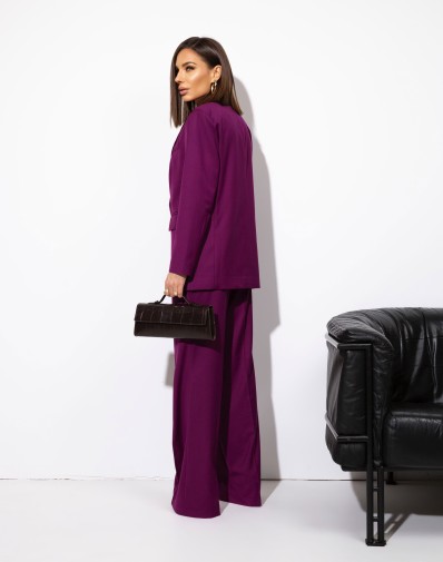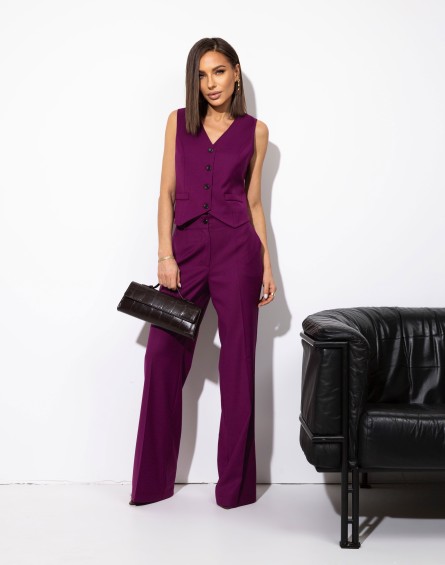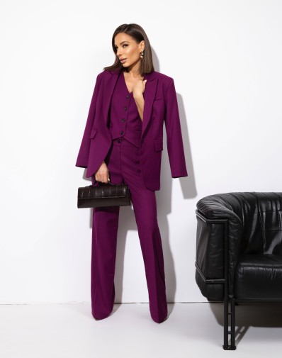 Spodnie z rozszerzaną nogawką. W pasie szlufki. Przód zapinany na klasyczne zapięcie. Z przodu wsuwane kieszenie. Z tyłu patki. Skompletujesz je z naszymi marynarkami i bluzkami Orlando.