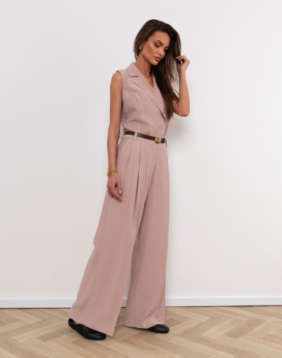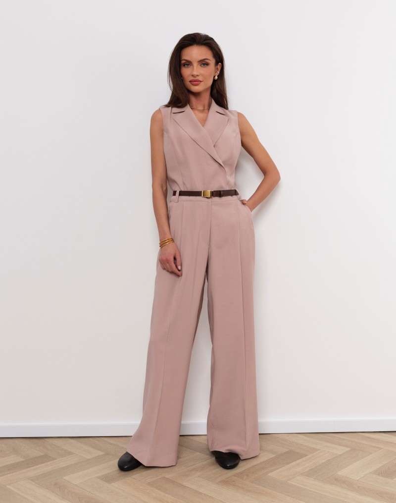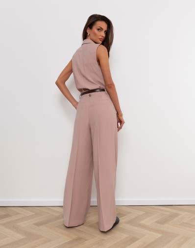 Stylowe i eleganckie spodnie wiskozowe, które łączą komfort z nowoczesnym designem. Wyposażone w praktyczne kieszenie na bokach oraz subtelne zakładki z przodu, które dodają im klasy. Szerokie nogawki zapewniają swobodę ruchów, a kant z przodu podkreśla ich elegancki charakter. Idealne zarówno na co dzień, jak i na specjalne okazje. Wybierz te spodnie, aby poczuć się modnie i komfortowo!. Polecamy w komplecie z kamizelką z naszej kolekcji.