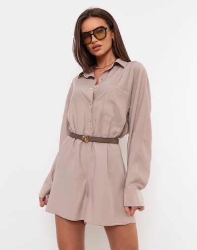 Komfortowy i stylowy kombinezon z długim rękawem i krótkimi nogawkami, idealny co dzień. Ten luźny i wygodny krój zapewnia pełną swobodę ruchów, dzięki czemu poczujesz się w nim wyjątkowo komfortowo przez cały dzień.Kombinezon zapinany jest na praktyczne guziki, które ułatwiają zakładanie i zdejmowanie, a także dodają mu casualowego charakteru. Cały produkt przypomina wyglądem klasyczną koszulę, co czyni go uniwersalnym elementem garderoby, który można zestawić zarówno z eleganckimi, jak i codziennymi stylizacjami.Wykonany z wysokiej jakości materiałów, zapewnia trwałość i komfort noszenia. To idealny wybór dla osób ceniących sobie wygodę i modny, swobodny styl. Kup już dziś i ciesz się uniwersalnym kombinezonem, który sprawdzi się na wiele okazji!