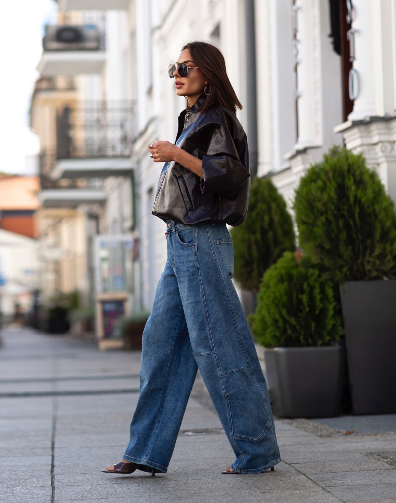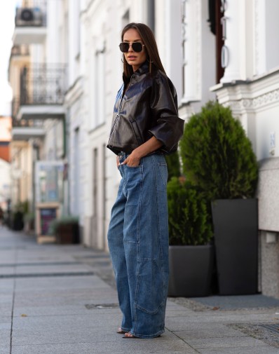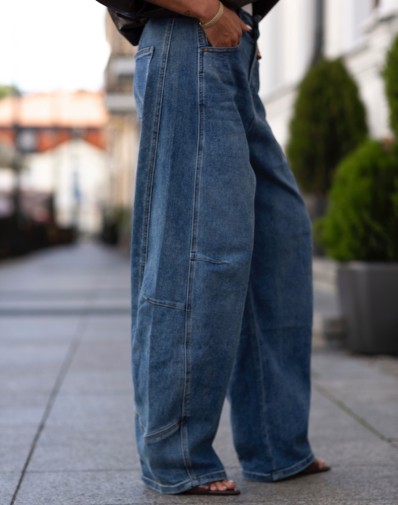 Jeansy typu balloon z wysokim stanem to połączenie luzu i nowoczesnego stylu. Szerokie w biodrach i udach, delikatnie zwężają się ku dołowi, tworząc modny, nonszalancki fason. Wykonane z miękkiego, spranego denimu z dekoracyjnymi przeszyciami, idealnie sprawdzą się zarówno w codziennych, jak i bardziej wyrazistych stylizacjach.