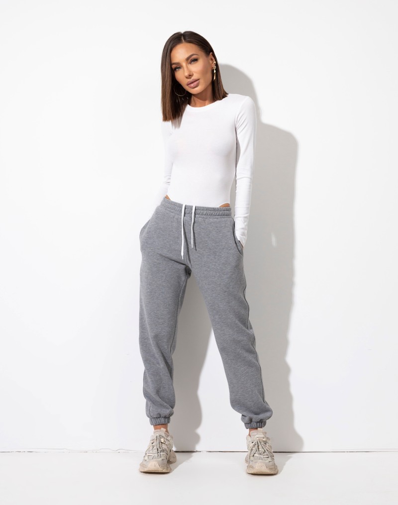 Spodnie dresowe ze zwężanymi nogawkami. W pasie gruba guma oraz sznurek do regulacji . Po bokach wsuwane kieszenie.Wykonane z przyjemnego dla ciała materiału.Ocieplane.Komfortowo dopasowują się do sylwetki.