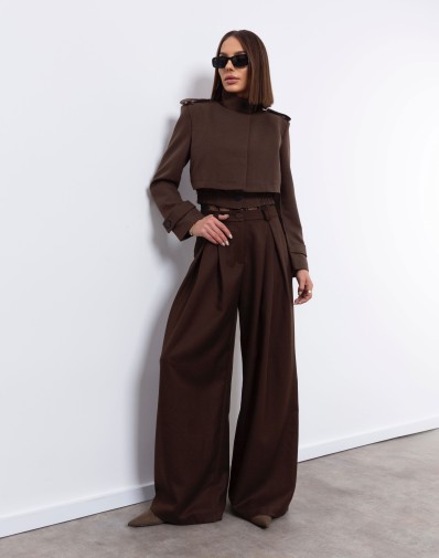 Szerokie spodnie Amelia z kontrafałdami Czekoladowe
