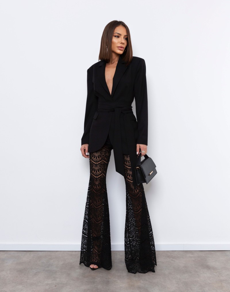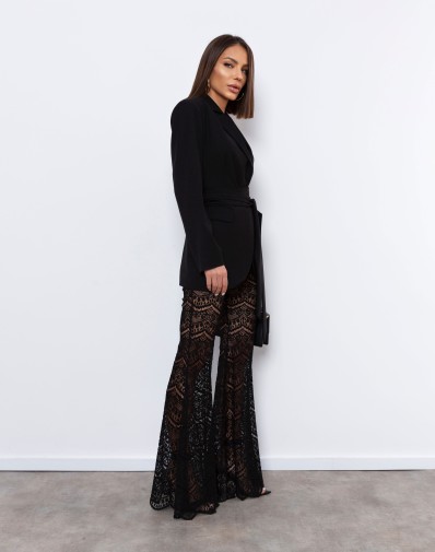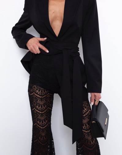 Te dzwony z koronki to kwintesencja elegancji i romantyzmu w jednym. Ich delikatna koronkowa tkanina subtelnie odsłania ciało, tworząc efektowny kontrast z podszewką w formie szortów, która zapewnia komfort noszenia i dyskrecję.