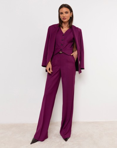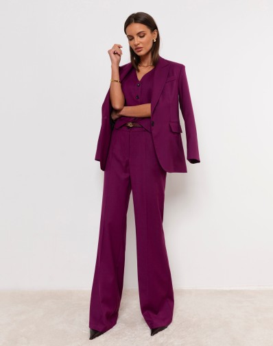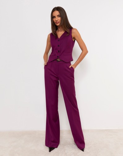 Spodnie z rozszerzaną nogawką. W pasie szlufki. Przód zapinany na klasyczne zapięcie. Z przodu wsuwane kieszenie. Z tyłu patki. Skompletujesz je z naszymi marynarkami i bluzkami Orlando.