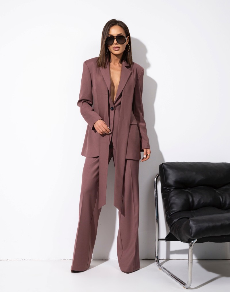 Spodnie z rozszerzaną nogawką. W pasie szlufki. Przód zapinany na klasyczne zapięcie. Z przodu wsuwane kieszenie. Z tyłu patki. Skompletujesz je z naszymi marynarkami z paskiem .