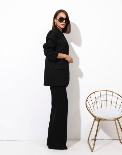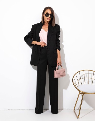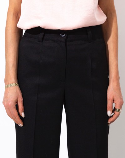 Spodnie z rozszerzaną nogawką. W pasie szlufki. Przód zapinany na klasyczne zapięcie. Z przodu wsuwane kieszenie. Z tyłu patki. Skompletujesz je z naszymi marynarkami KARMEN.
