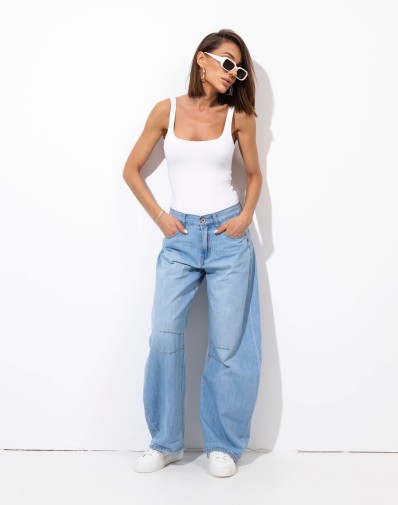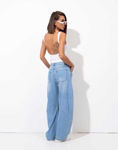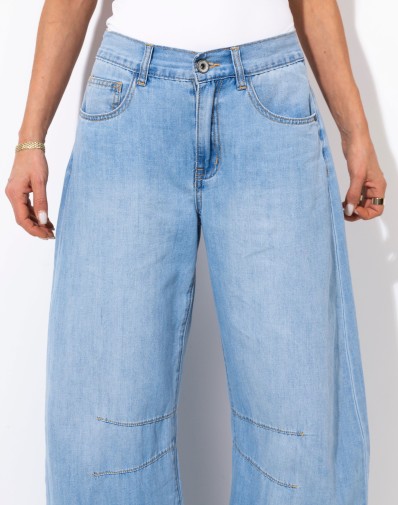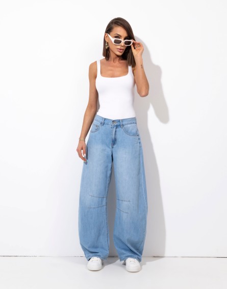 Te spodnie to idealne połączenie wygody i stylu. Uszyte z miękkiej, ale trwałej tkaniny jeansowej wyróżniają się prostym, lekko luźnym krojem ze zwężającymi się nogawkami ku dołowi , który pięknie układa się na sylwetce. Wysoki stan optycznie wydłuża nogi i podkreśla talię, a klasyczne kieszenie nadają im ponadczasowego charakteru. To model, który doskonale sprawdzi się zarówno w casualowych, jak i bardziej eleganckich stylizacjach – wystarczy dodać szpilki albo sneakersy.