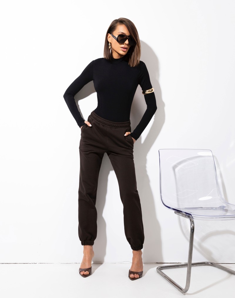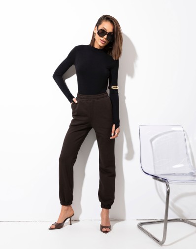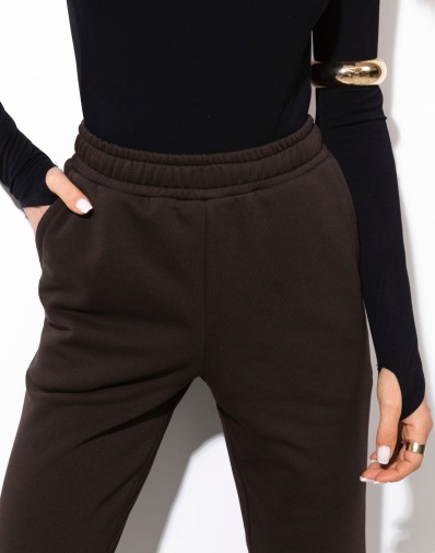 Spodnie dresowe ze zwężanymi nogawkami. W pasie gruba guma oraz sznurek do regulacji . Po bokach wsuwane kieszenie.Wykonane z przyjemnego dla ciała materiału.Ocieplane.Komfortowo dopasowują się do sylwetki.