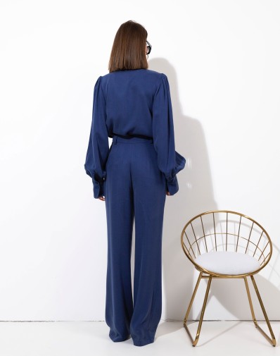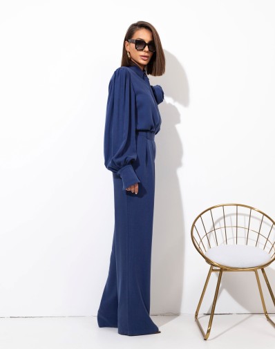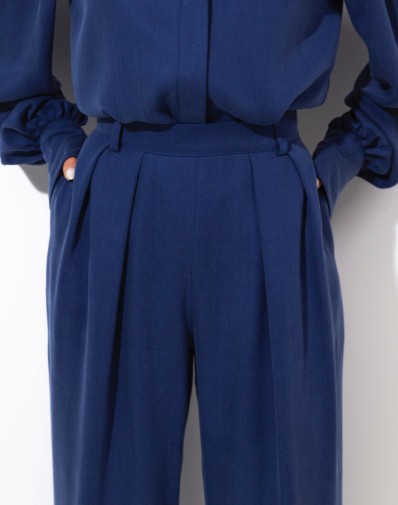 Spodnie o luźnym kroju z wysokiej jakości tkaniny jakości premium, z wysokim stanem. Zakładki z przodu. tył gładki .Zamek kryty z boku, w pasie szlufki.