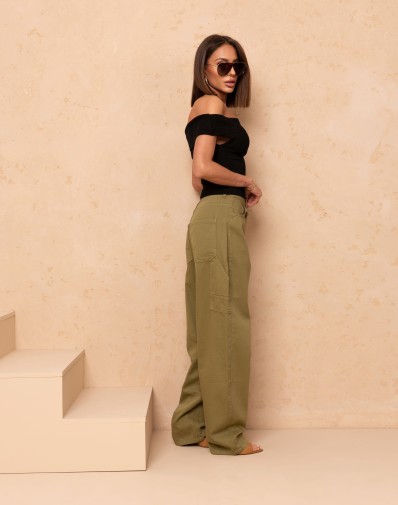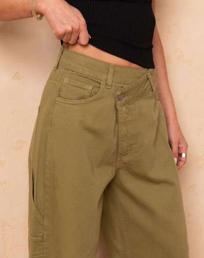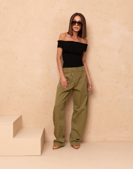 Jeansy z prostą nogawką uszyte z miękkiej, wysokiej jakości tkaniny. Model z wysokim stanem i asymetrycznym zapięciem na dwa guziki oraz suwak pięknie podkreśla talię i optycznie wydłuża sylwetkę. Idealne do codziennych stylizacji – świetnie wyglądają zarówno ze sneakersami, jak i z eleganckimi szpilkami.