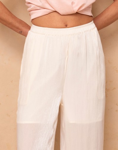 Spodnie z Lejącej Tkaniny z Połyskiem Ecru