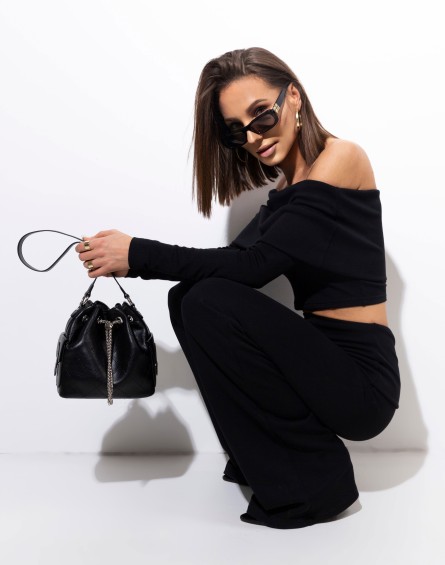 Stylowa torebka typu worek w klasycznej czerni, wykonana z wysokiej jakości skóry z subtelnym pikowaniem. Zdobiona efektownym łańcuszkiem i regulowanym paskiem, który dodaje jej nowoczesnego charakteru. Model wyposażony w małą kieszonkę z boku, wewnętrzną przegródkę ułatwiającą organizację oraz dodatkowy długi pasek, dzięki któremu możesz nosić ją na ramieniu lub crossbody. Idealna na co dzień i na wieczorne wyjścia – praktyczna, a jednocześnie niezwykle stylowa.