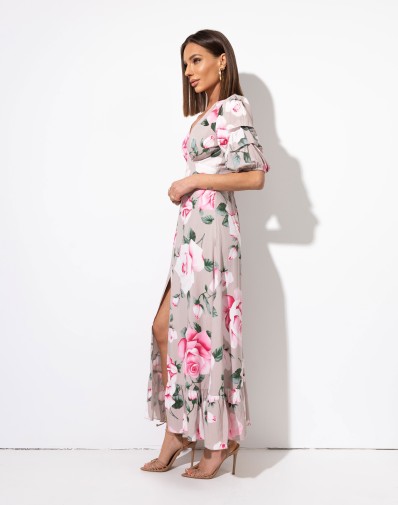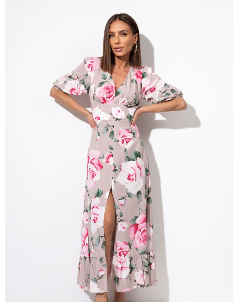 Sukienka Marciana z rozporkiem w róże