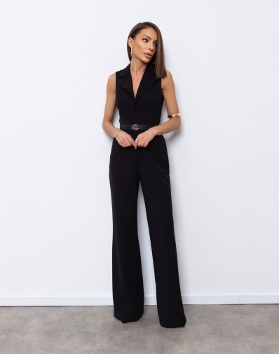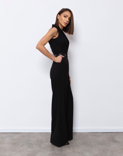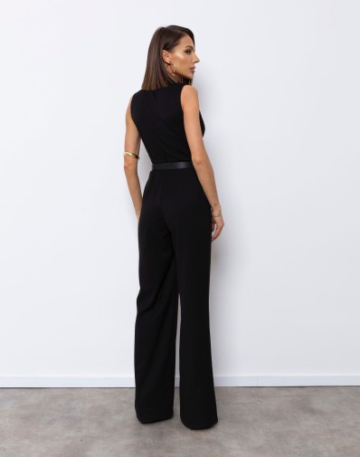 Bawełniany kombinezon z szerokimi nogawkami na grubych ramiączkach to stylowy wybór na różne okazje. Zapinany na zamek z tyłu, zapewnia wygodę i łatwość w zakładaniu. W talii znajdują się szlufki , które umożliwiają dopasowanie do sylwetki. Zapinany z przodu na dwa kryte guziki oraz zamek , posiada dwie praktyczne kieszenie. Góra ma fason koszuli bez rękawów, co zapewnia komfort i swobodę.Dekolt w kształcie litery V dodaje mu elegancji. Idealny do noszenia na co dzień oraz na specjalne wyjścia..PASEK NIE JEST W ZESTAWIE