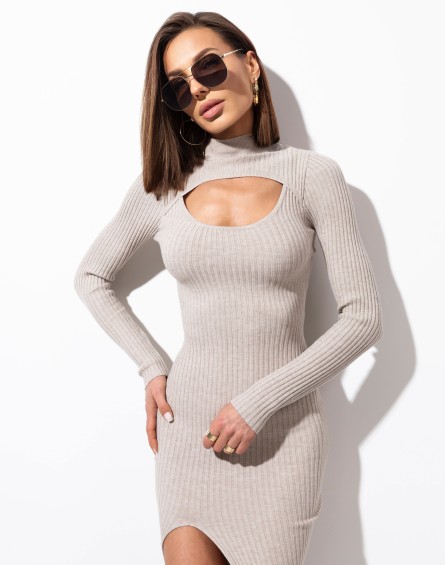 Sukienka Ilda Sweterkowa Midi z Wycięciem Beż