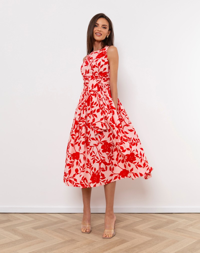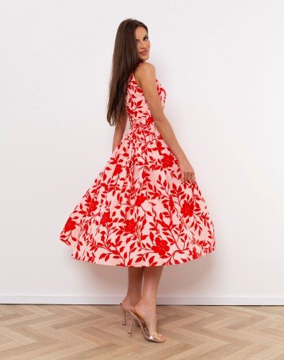 Sukienka o tym kroju to stylowa propozycja na różne okazje. Posiada grube ramiączka oraz zaokrąglony dekolt, co dodaje jej elegancji i komfortu. Zamek kryty z tyłu zapewnia łatwe zakładanie. Idealna na letnie przyjęcia,casualowe wyjścia czy nawet do pracy .