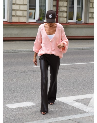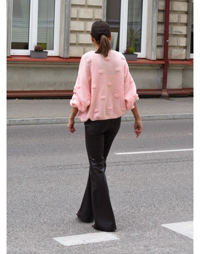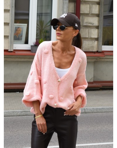 Miękki, oversize’owy sweter w kolorze pudrowego różu to idealne połączenie wygody i stylu. Wykonany z przyjemnej w dotyku dzianiny, zdobiony uroczymi 3D kuleczkami i dużymi guzikami, nadaje lookowi dziewczęcego charakteru. Luźny krój z szerokimi rękawami świetnie prezentuje się zarówno do jeansów, jak i eleganckich spodni. Must-have na chłodniejsze dni!