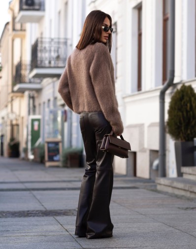 Delikatny i kobiecy sweter w odcieniu beżowym to idealna baza do wielu stylizacji. Wykonany w 80% z kid moheru, jest niezwykle miękki, lekki i przyjemny w noszeniu. Model zapinany na cztery guziki z dekoltem w serek subtelnie podkreśla sylwetkę, a długie rękawy zakończone delikatnym ściągaczem dodają mu elegancji i wygody.Świetnie sprawdzi się zarówno w casualowych, jak i bardziej eleganckich zestawach – do spodni, spódnicy czy sukienki.