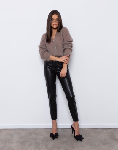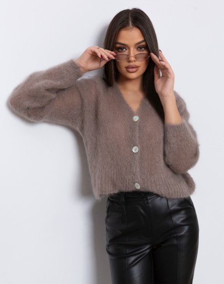 Delikatny i kobiecy sweter w odcieniu ciepłego beżu to idealna baza do wielu stylizacji. Wykonany w 80% z kid moheru, jest niezwykle miękki, lekki i przyjemny w noszeniu. Model zapinany na cztery guziki z dekoltem w serek subtelnie podkreśla sylwetkę, a długie rękawy zakończone delikatnym ściągaczem dodają mu elegancji i wygody.Świetnie sprawdzi się zarówno w casualowych, jak i bardziej eleganckich zestawach – do spodni, spódnicy czy sukienki.