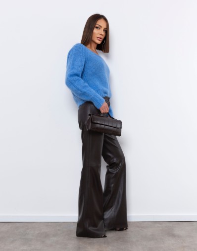 Miękki, przyjemny w dotyku sweter o luźnym kroju, który zapewnia komfort i wygodę noszenia. Posiada klasyczny zaokrąglony dekolt oraz długie rękawy, dzięki czemu świetnie sprawdzi się w codziennych stylizacjach. Idealny zarówno do spodni, jak i spódnic, tworząc stylowy i ponadczasowy look.