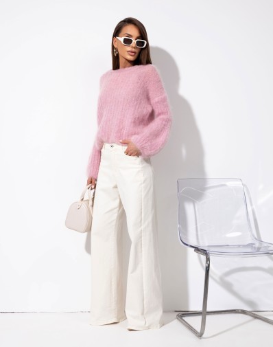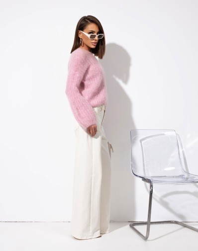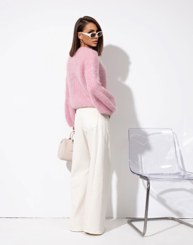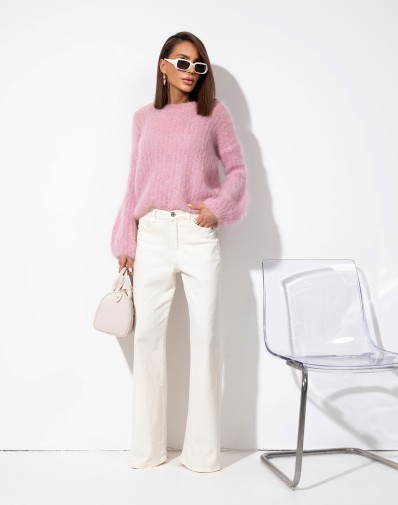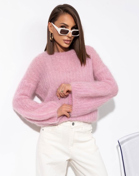 Miękki sweter z szerokimi rękawami w odcieniu pudrowego różu to połączenie wygody i stylu. Wykonany z puszystej, przyjemnej w dotyku dzianiny, zapewnia ciepło i komfort w chłodniejsze dni. Ma luźny fason, a szerokie rękawy zwężane przy nadgarstkach dodają mu nowoczesnego charakteru. Prosty dekolt i delikatne wykończenia sprawiają, że świetnie komponuje się zarówno z jeansami, jak i bardziej eleganckimi spodniami. To idealny wybór dla kobiet, które cenią sobie klasykę w modnym, współczesnym wydaniu.