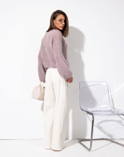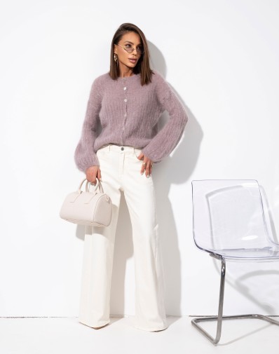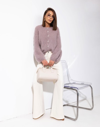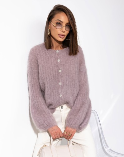 Sweter prążkowany z szerokimi rękawami Moher Zapinany Cappuccino