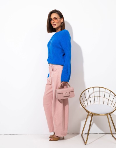 Sweter prążkowany z szerokimi rękawami Alpaka Zapinany Chabrowy