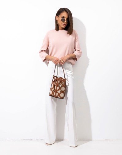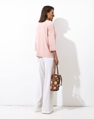 Minimalistyczny sweter o obniżonej linii ramion , o luźnym kroju z rękawem 3/4, który łączy wygodę z ponadczasowym stylem. Wykonany z miękkiej, przyjemnej w dotyku dzianiny, świetnie układa się na sylwetce i zapewnia komfort przez cały dzień. Uniwersalny fason sprawia, że idealnie pasuje zarówno do jeansów, jak i bardziej eleganckich stylizacji.