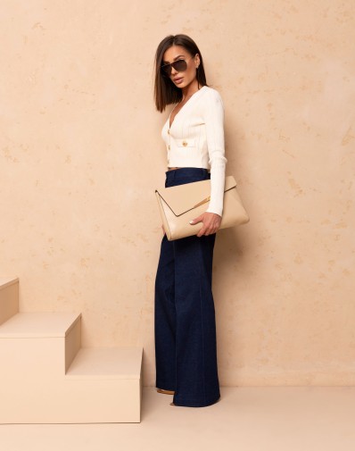 Sweterek Z Prążka z Ozdobnymi Guzikami Ecru 88039
