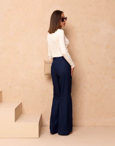 Stylowy, dopasowany sweterek prążkowany. Wykonany z miękkiej, elastycznej dzianiny, zapinany na ozdobne, złote napy, które dodają całości eleganckiego charakteru.Dekolt w serek , długi rękaw. Idealny zarówno do codziennych, jak i bardziej stylowych zestawów — ponadczasowy model do każdej garderoby.