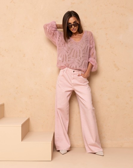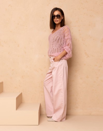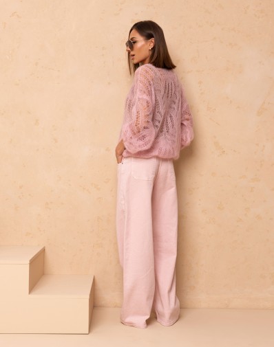 Sweter Kid Moher Ażurowy w Serek Pudrowy Róż 021